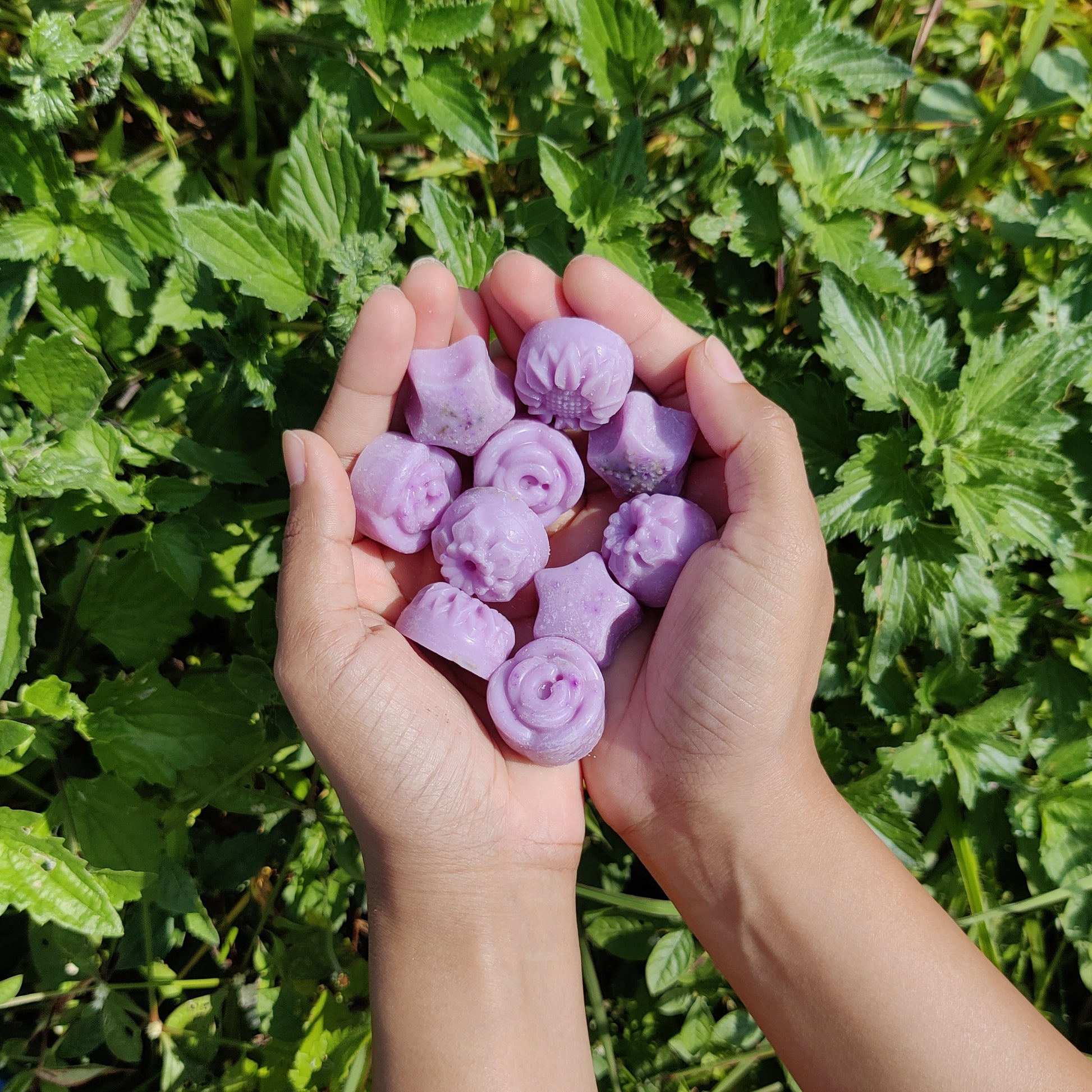 Wax melts are pieces of fragranced wax available in various shapes, sizes and colours. Wax melts are not lit with a flame as they don't have a wick like candles. Instead, they are placed in a wax warmer where gentle heat slowly melts the wax, releasing a fragrance that fills the room. This process is often safer and more convenient than lighting a candle. They are ideal for those who enjoy aromatherapy or want to add a pleasant scent to their home without the hassle of lighting a candle.