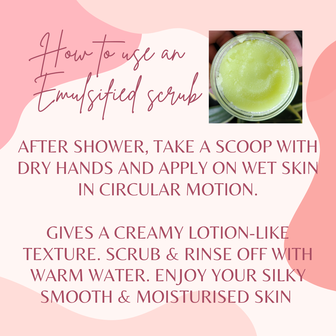 Emulsified scrubs are made from oils & butters that nourish your skin and do not strip it off of moisture. We recommend using these once or twice a week.