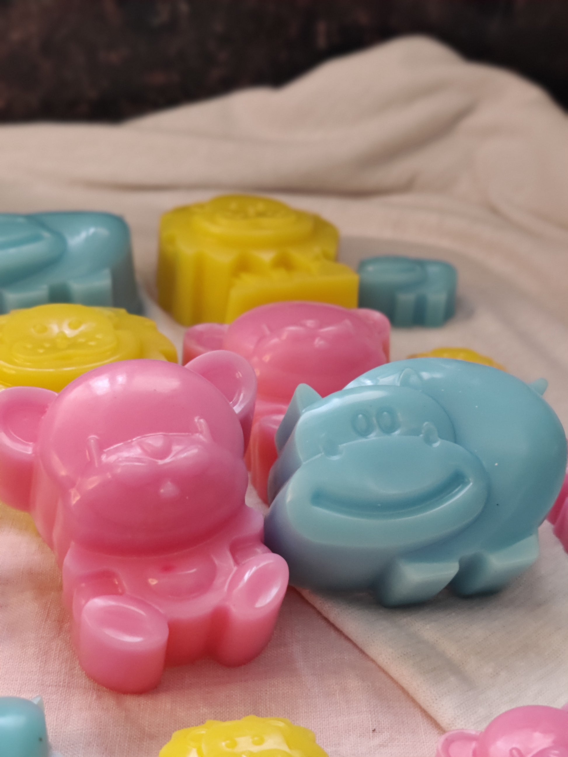 Our kids soaps are made with gentle goat milk and a mild fragrance, perfect for your little ones' sensitive skin. Our formula is designed to cleanse without stripping natural oils, leaving skin soft and moisturized. We prioritize using natural ingredients free from harsh chemicals commonly found in other soaps. Our kids soaps come in a variety of fun and playful designs that will excite your little ones and make bath time more enjoyable. With our gentle formula, you can trust that your children's skin will be taken care of while cleaning away the day's adventures.